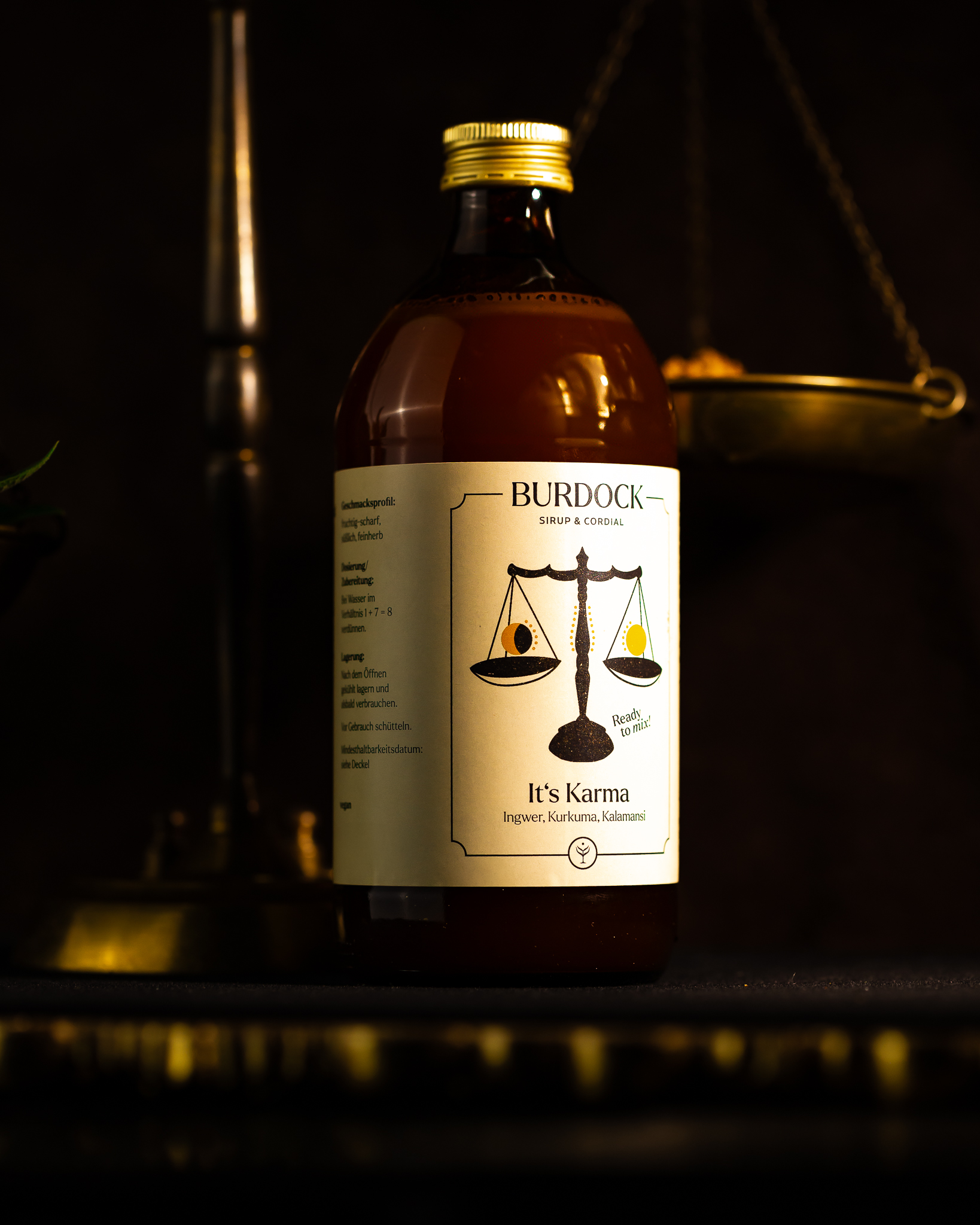 Burdock It’s Karma ist ein moderner Cordial mit einem klaren, würzig-frischen Profil. Ingwer, Kurkuma und Kalamansi verbinden sich zu einer kraftvollen Balance aus Schärfe, Frische und zitrischer Leichtigkeit.